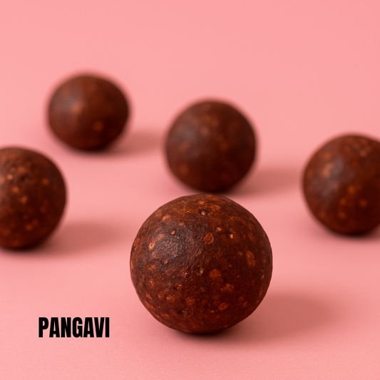 Welcome to Pangavi®. Enjoy the exquisite taste of energy balls, a delicious fusion of natural ingredients that delight your taste buds and pamper and nourish your body. Made with premium dates, creamy peanut butter, a nutrient-rich base of chickpea flour, each bite offers a perfect balance of flavor and healthy goodness.