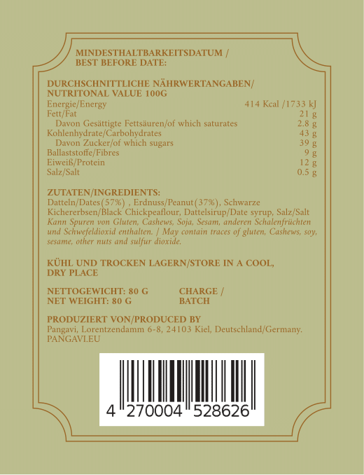 Built on chickpeas with dates and real peanut butter. Lightly salted. Sweet, salty, filling. No nonsense. No marketing hype. Just function and taste in one bite.